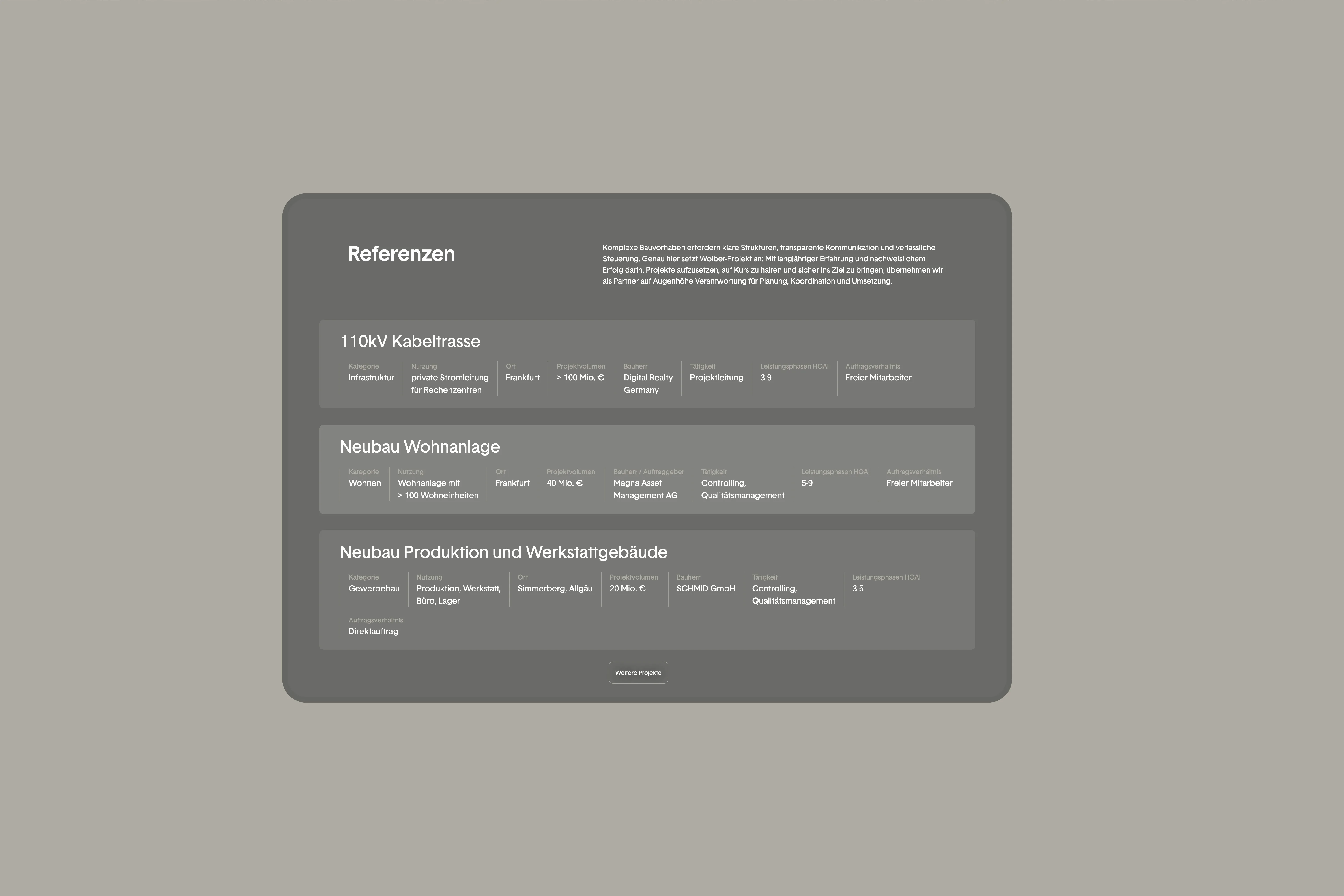 Wolber Projekt bringt komplexe Bauvorhaben sicher auf Kurs – und ins Ziel. Unser Branding? Wie die Leistungen des Kunden: auf den Punkt.